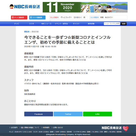 私がイラストを描いた新型コロナ「心のケア」動画が、NBC長崎放送(TBS系列)で「今できることを一歩ずつ」というミニ番組として放送されます。