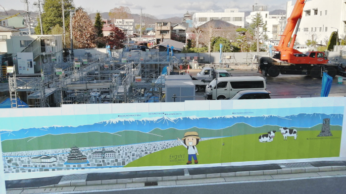 私のイラストを使った工事仮囲い(塀)が、松本市立博物館の建設現場に設置されています!