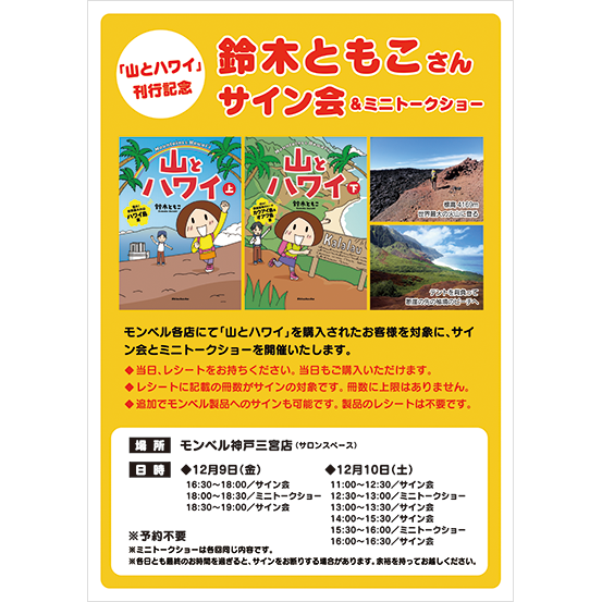 『山とハワイ』発売を記念して、神戸でサイン会&ミニトークショーを行います。